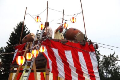 この盆踊り大会は自分たちで木材を組み上げてやぐらを組む、昔ながらの方法で開催しています。